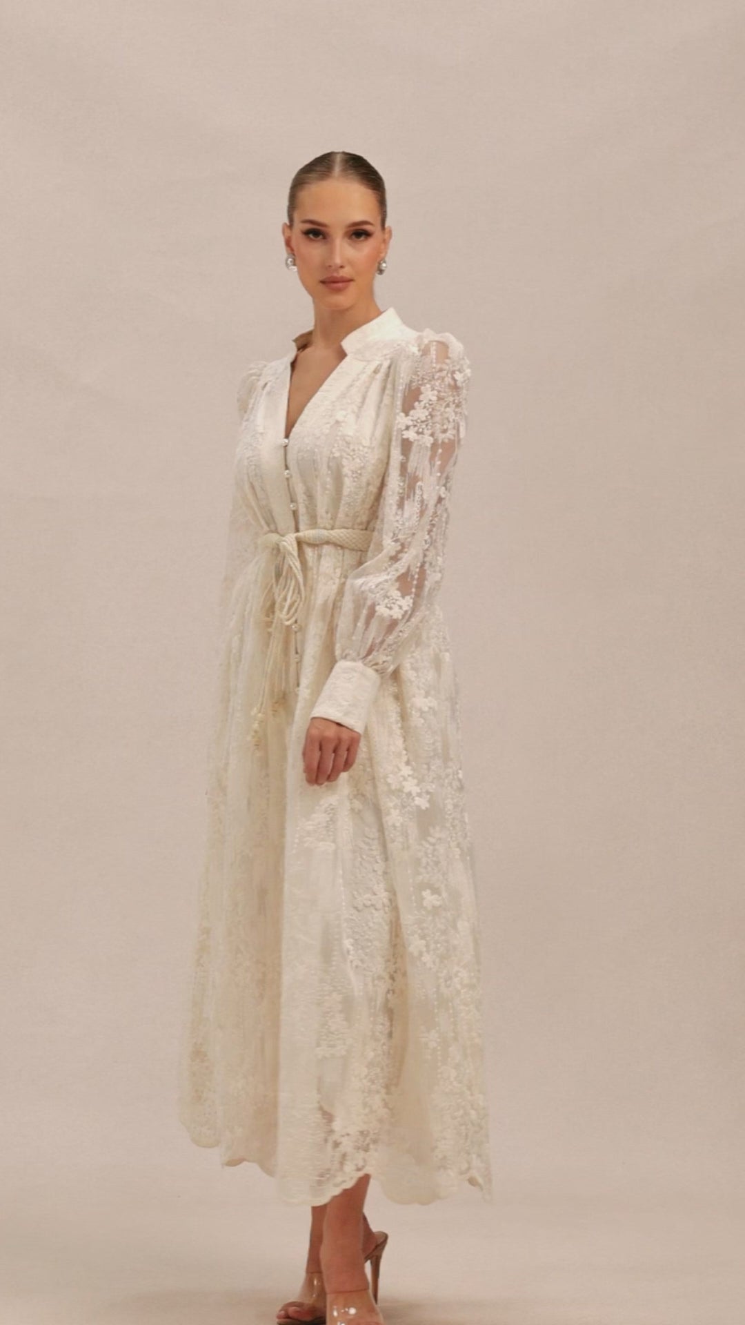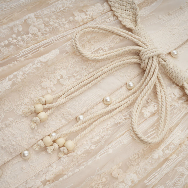 Lightweight embroidered lace that flows with every step, no stiffness, no restrictions, just pure romantic presence wherever you go.
